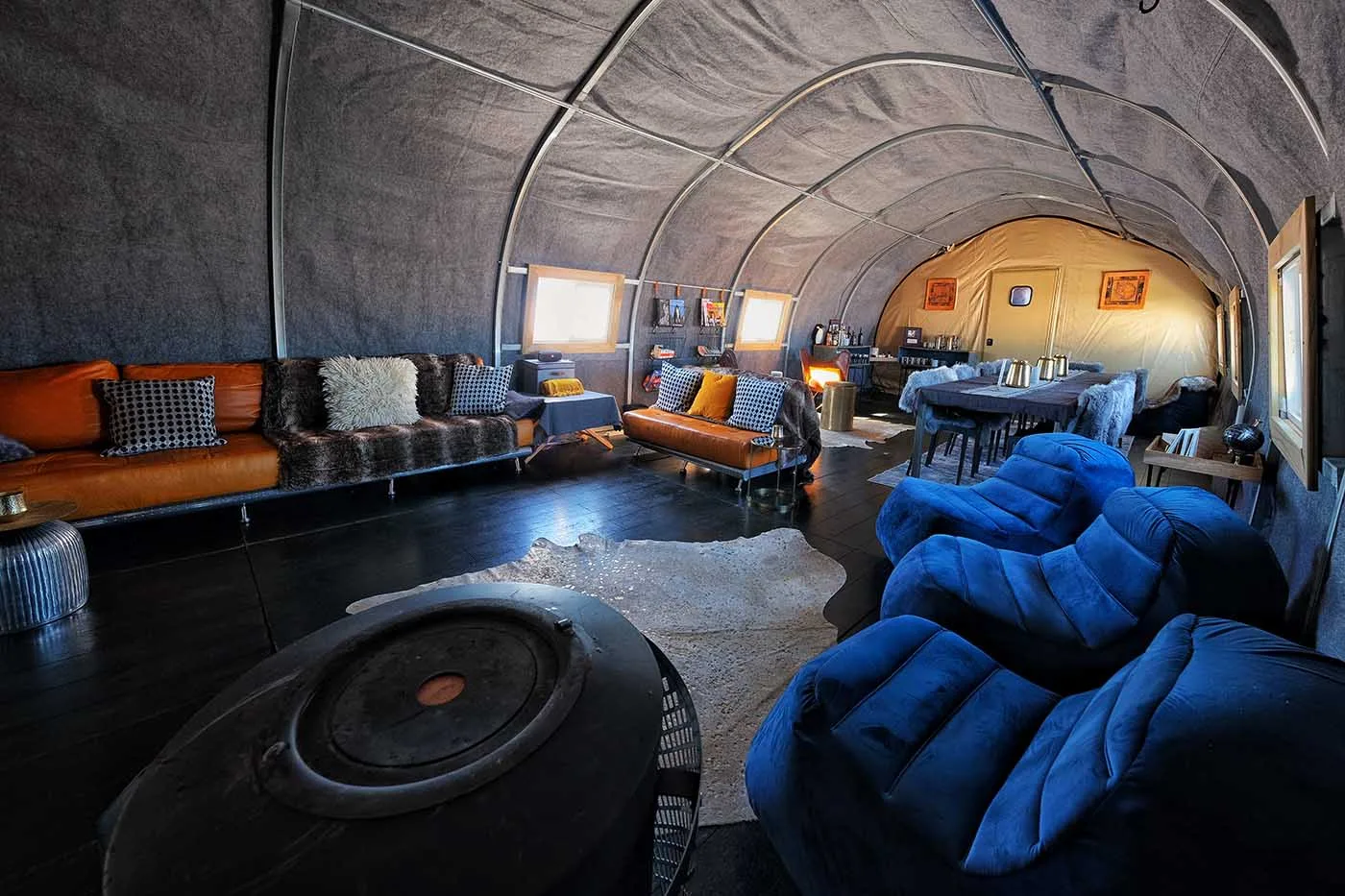 White Desert’s flagship, Whichaway Camp, is the closest thing to a hotel in Antarctica. Located in Queen Maud Land’s Schirmacher Oasis beside a freshwater lake and glacier, it offers stunning views. Six cozy polar pods evoke the “Heroic Age” of exploration, blending history with luxury. Each eco-friendly fiberglass pod features heating and private bathrooms. Communal pods house a dining area with gourmet meals by a private chef, a library, and lounge.